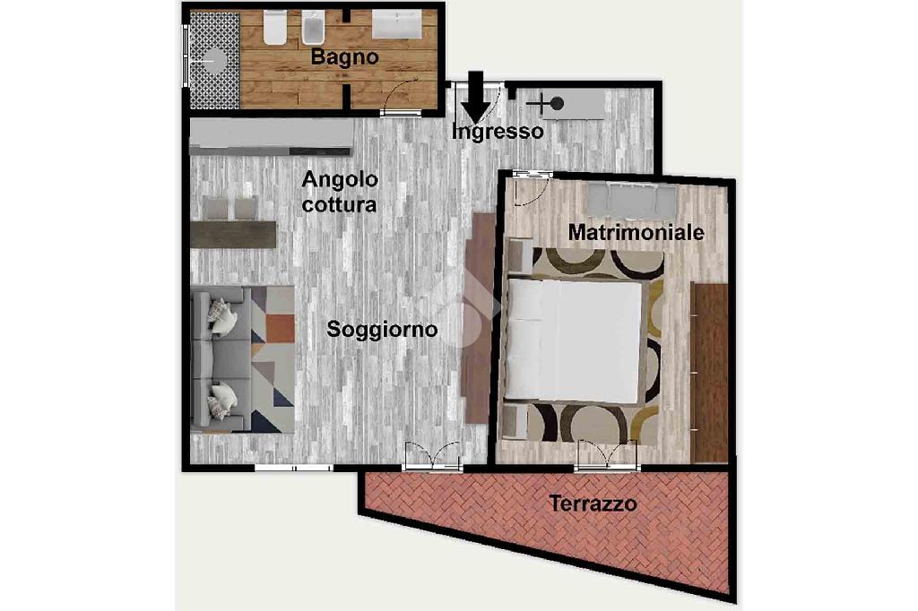 La zona notte comprende una spaziosa camera da letto, mentre il bagno, anch'esso ristrutturato, completa la disposizione interna.