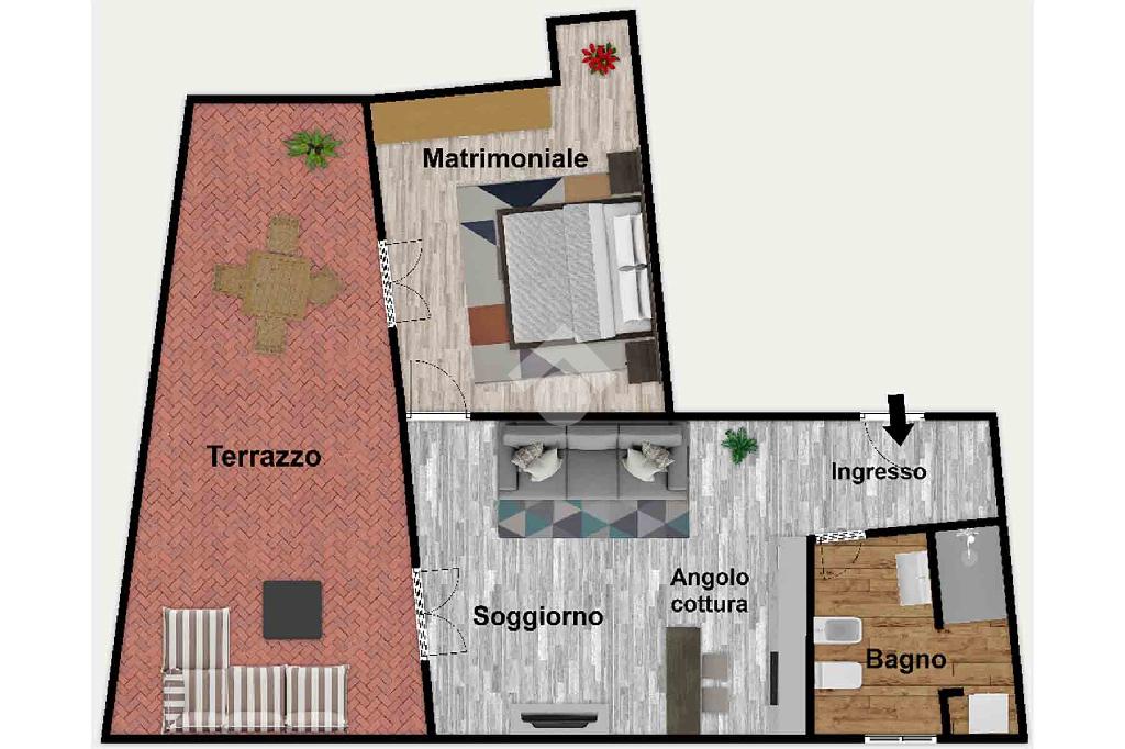 Un terrazzo al piano offre uno spazio esterno privato, ideale per momenti di relax.