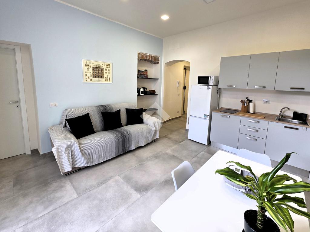 L'appartamento si apre su un ampio open space che unisce soggiorno e cucina, creando un ambiente accogliente e funzionale.