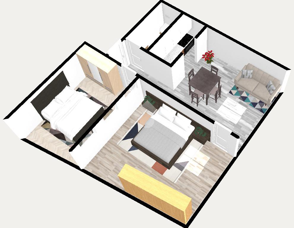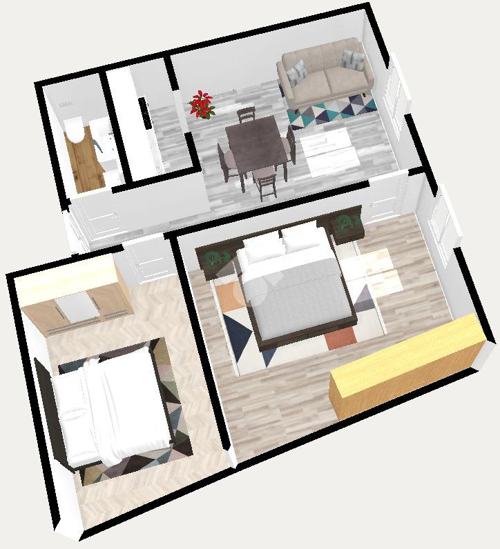 La zona notte comprende due camere da letto, garantendo spazio e privacy.