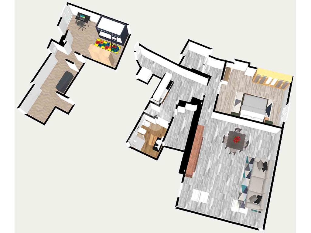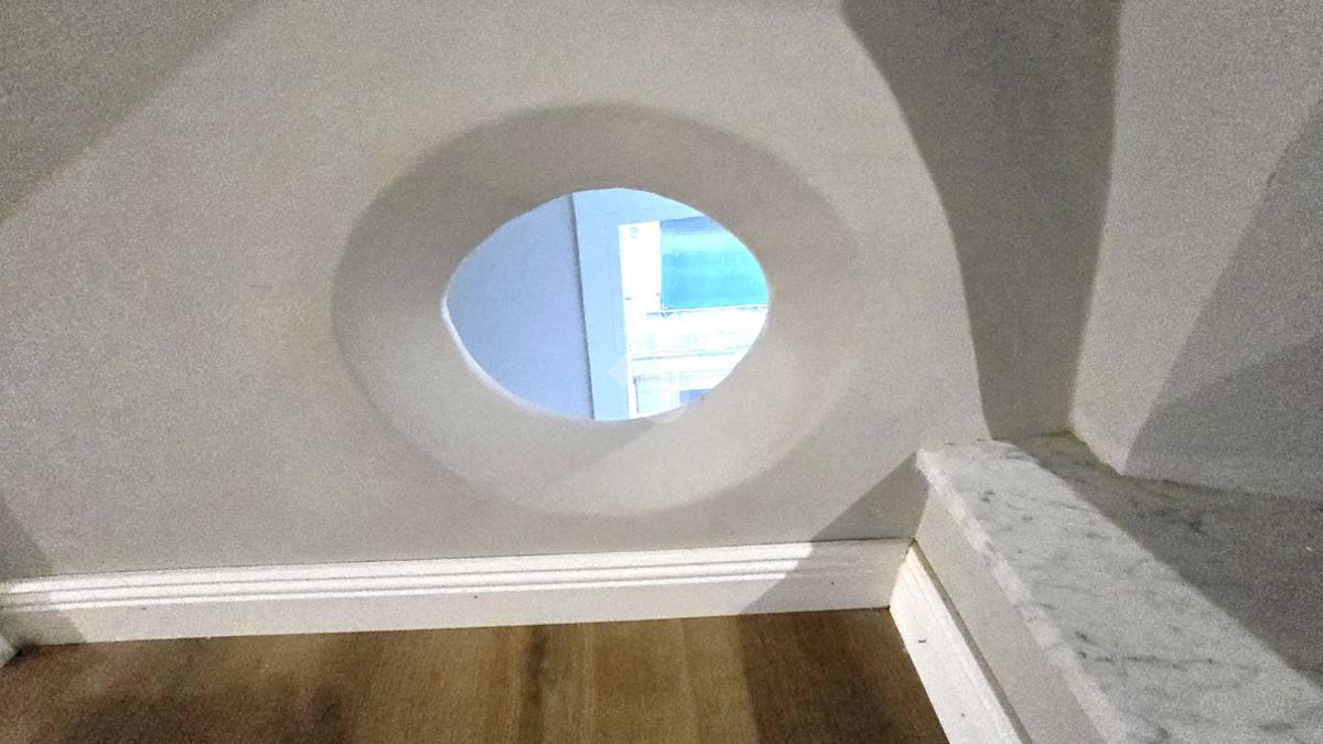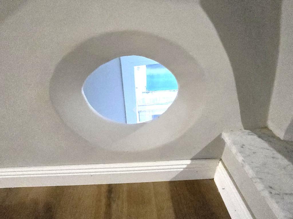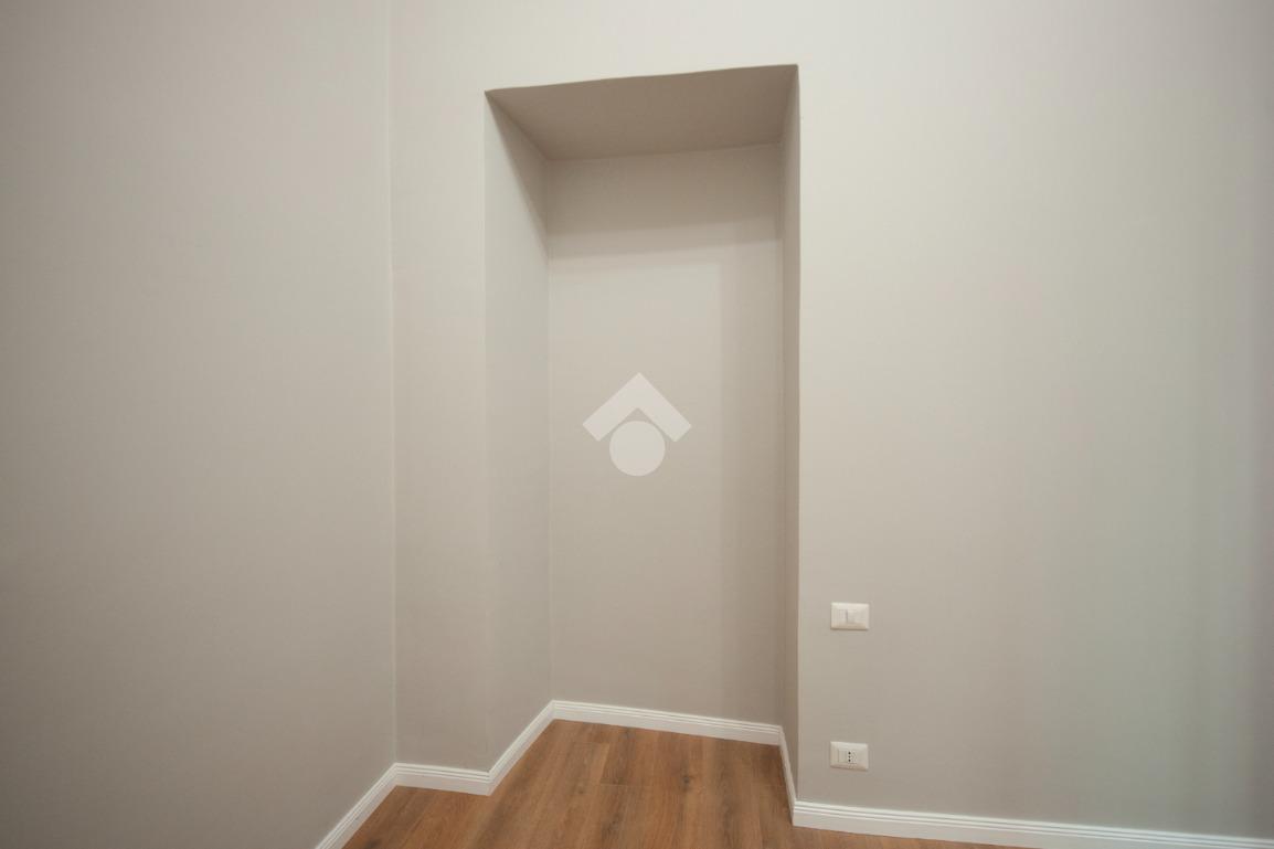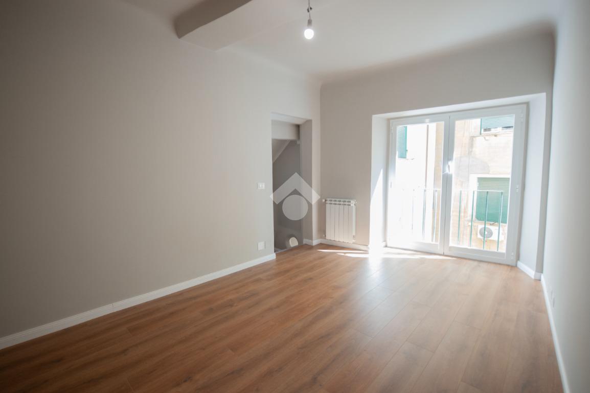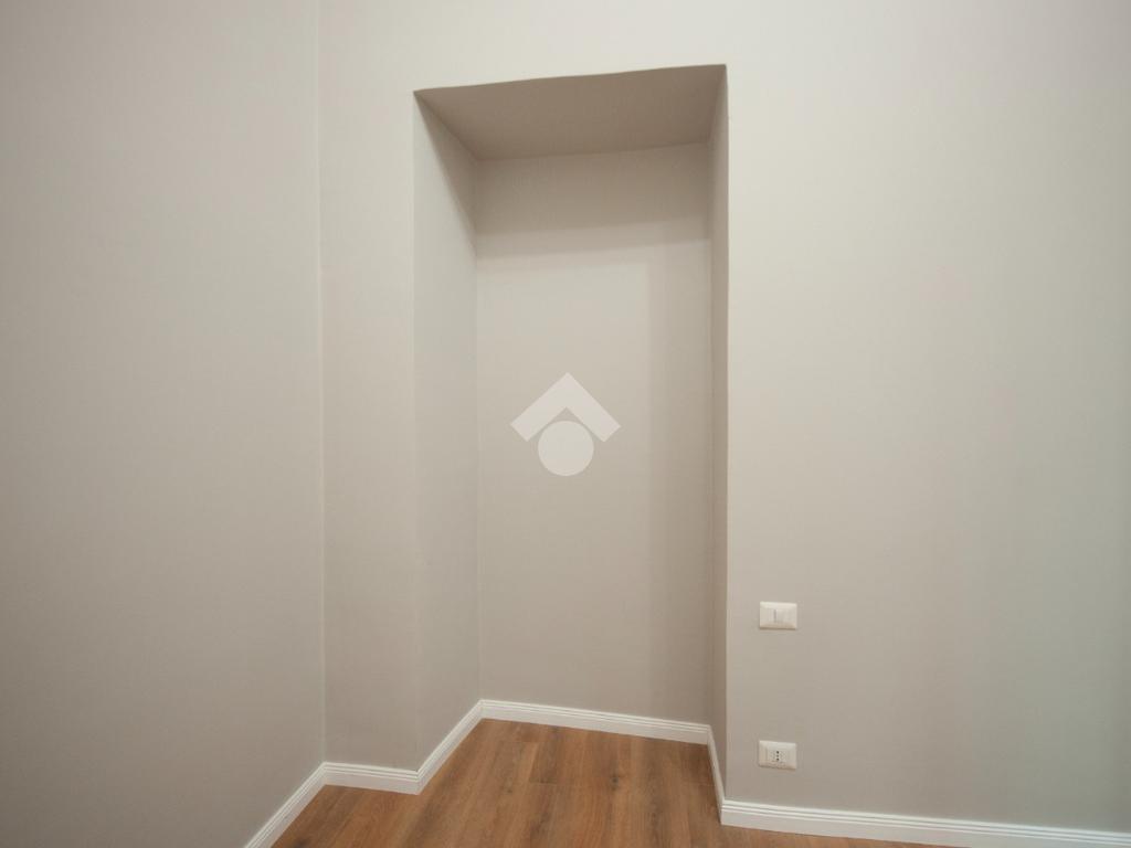Tramite scale si accede al piano superiore, dove troviamo dapprima un disimpegno vivibile e arredabile in diversi modi; infine si raggiunge la seconda camera da letto dotata di portafinestra con affaccio su Piazza de Franchi.
