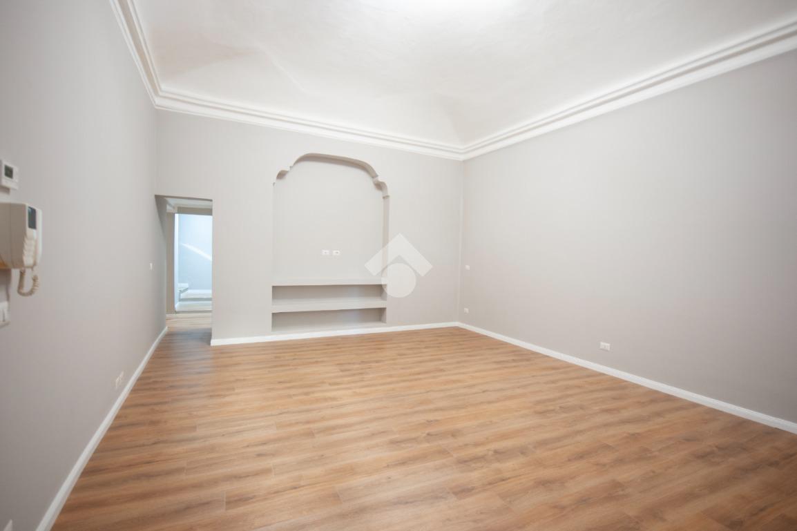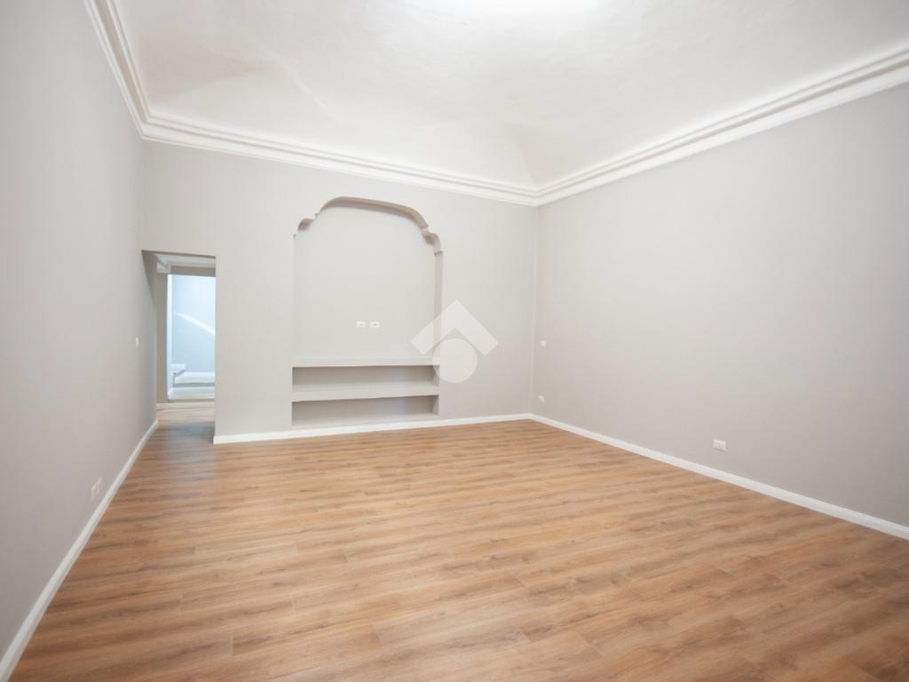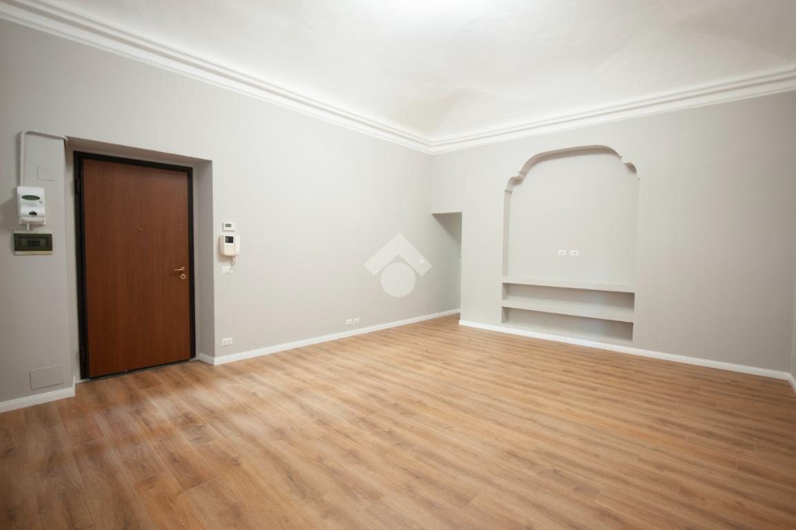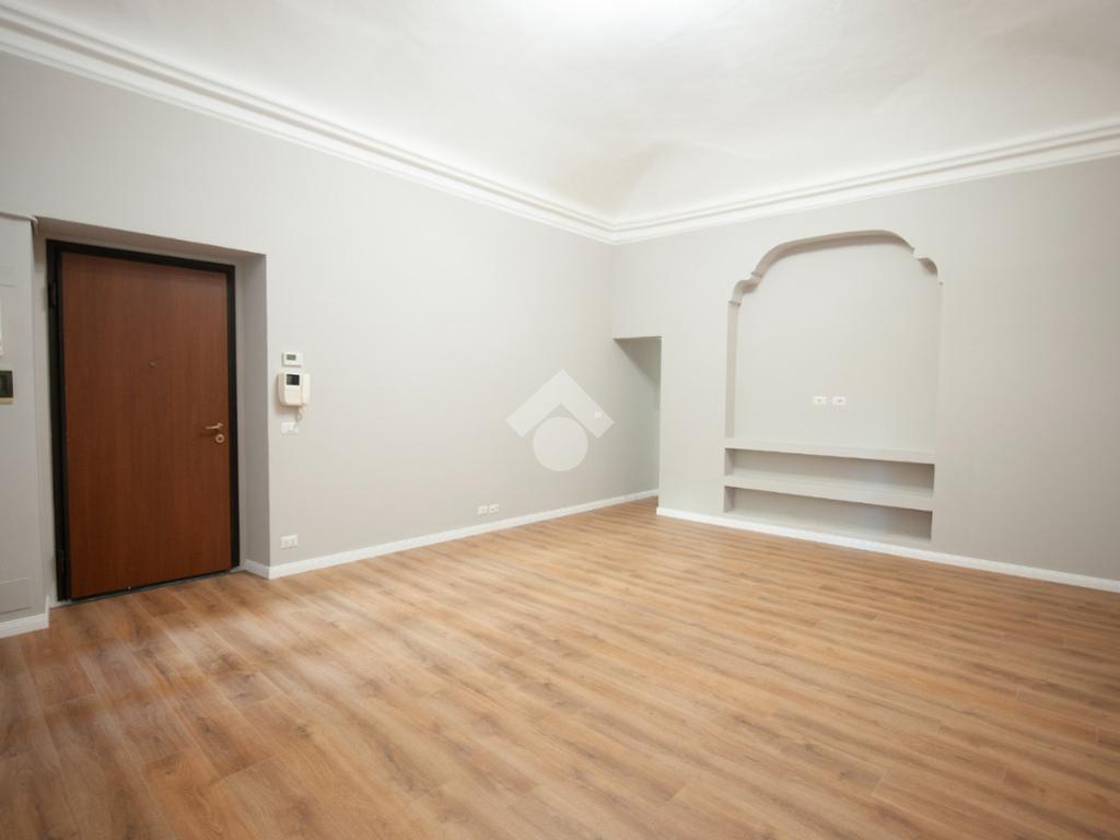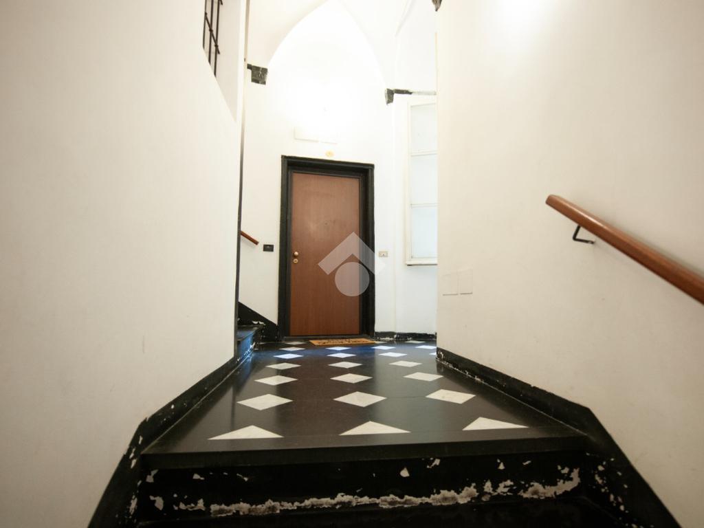 L' appartamento, su due livelli, è situato al primo e secondo piano di un palazzo storico del '500 vincolato dalla Soprintendenza. Entrando troviamo il salone doppio, punto di forza della casa; questo spazio ha una generosa metratura, alti soffitti a volta e due ampie finestre che consentono luce e areosità.