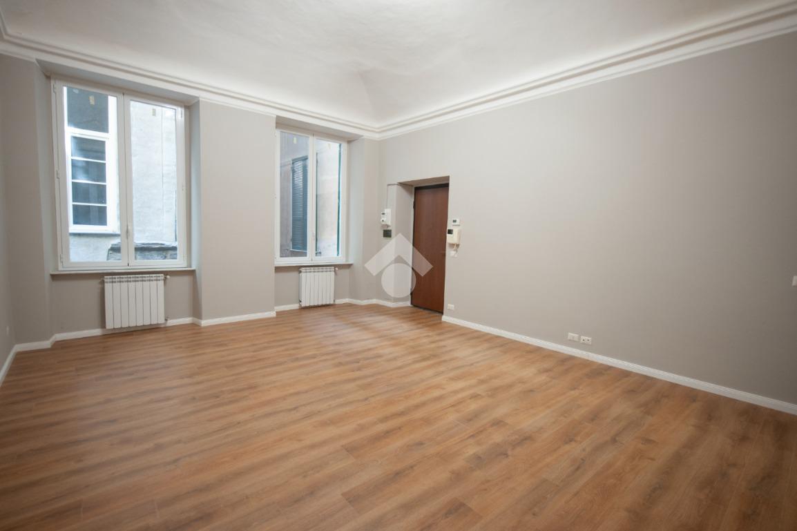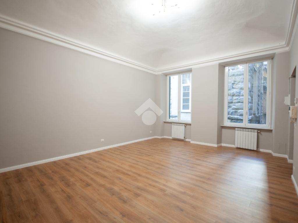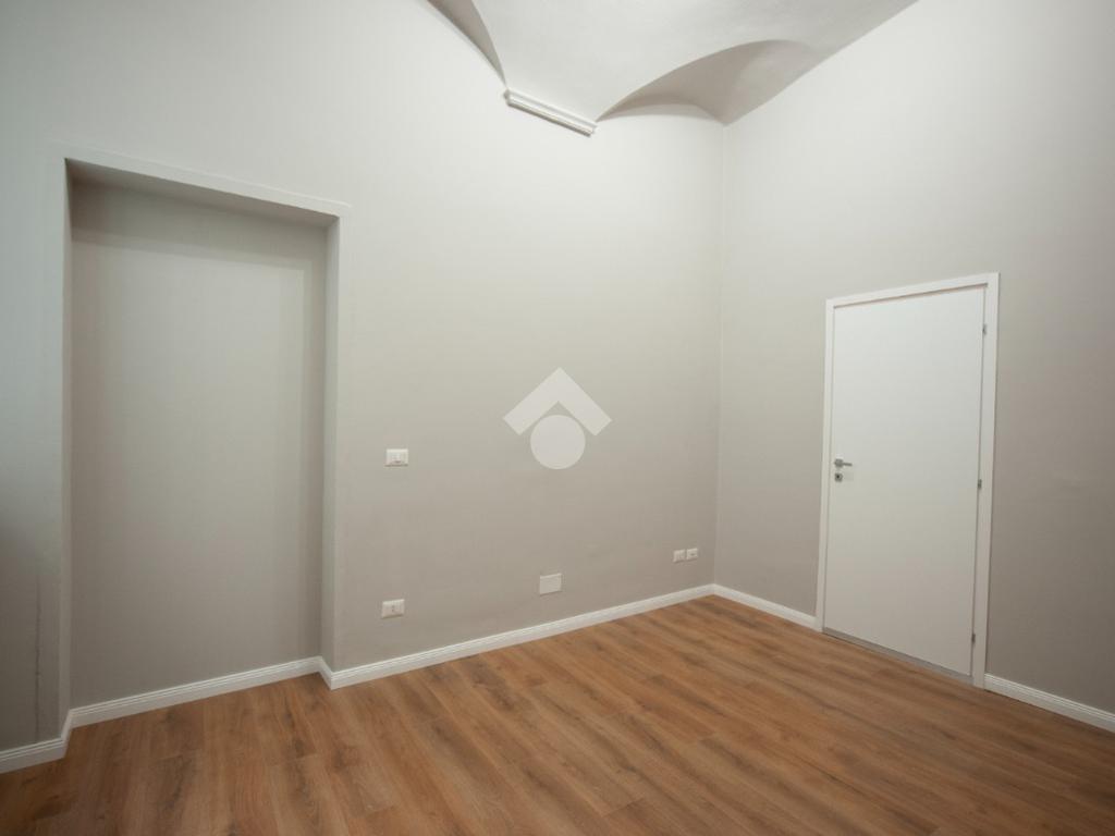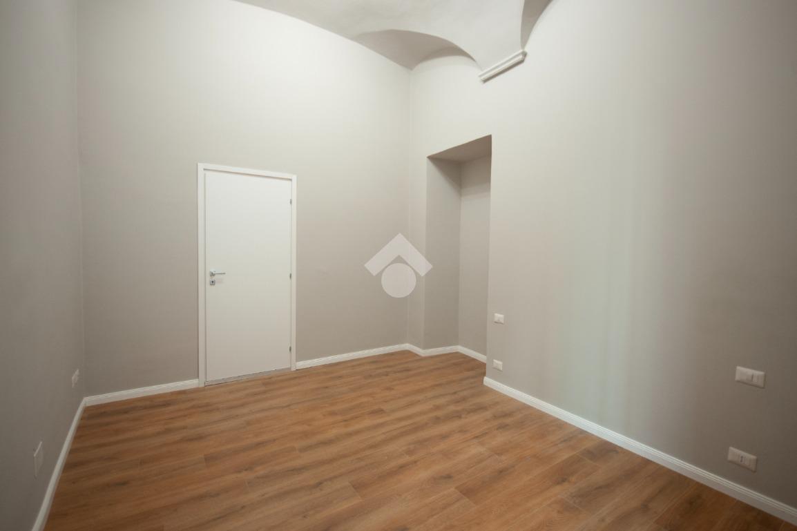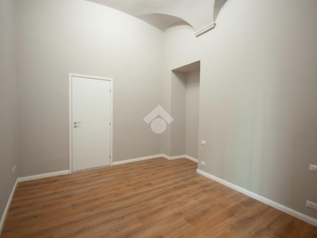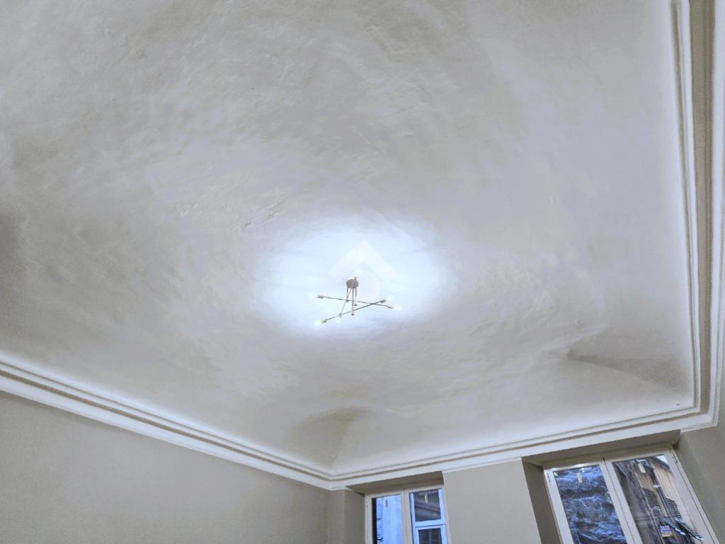 L' appartamento, su due livelli, è situato al primo e secondo piano di un palazzo storico del '500 vincolato dalla Soprintendenza. Entrando troviamo il salone doppio, punto di forza della casa; questo spazio ha una generosa metratura, alti soffitti a volta e due ampie finestre che consentono luce e areosità.