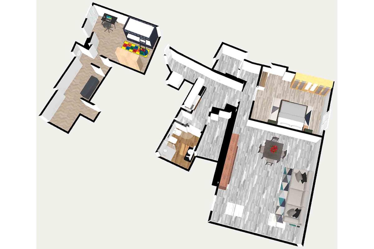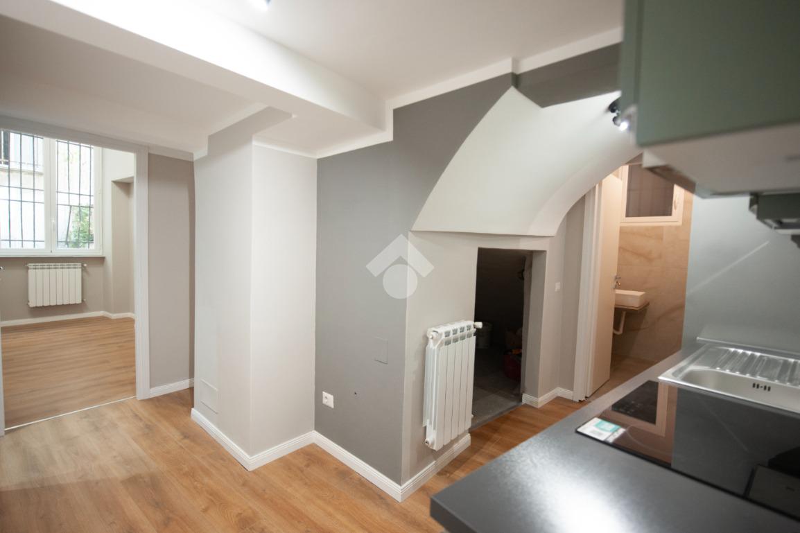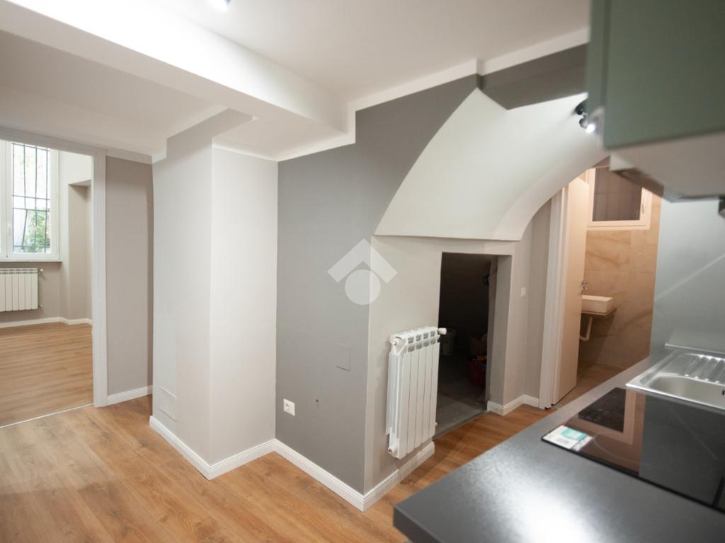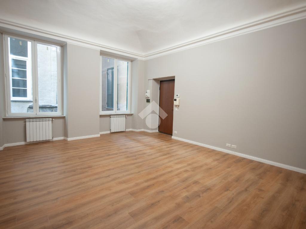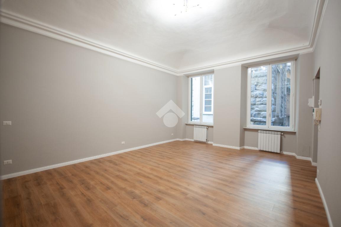 L' appartamento, su due livelli, è situato al primo e secondo piano di un palazzo storico del '500 vincolato dalla Soprintendenza. Entrando troviamo il salone doppio, punto di forza della casa; questo spazio ha una generosa metratura, alti soffitti a volta e due ampie finestre che consentono luce e areosità.