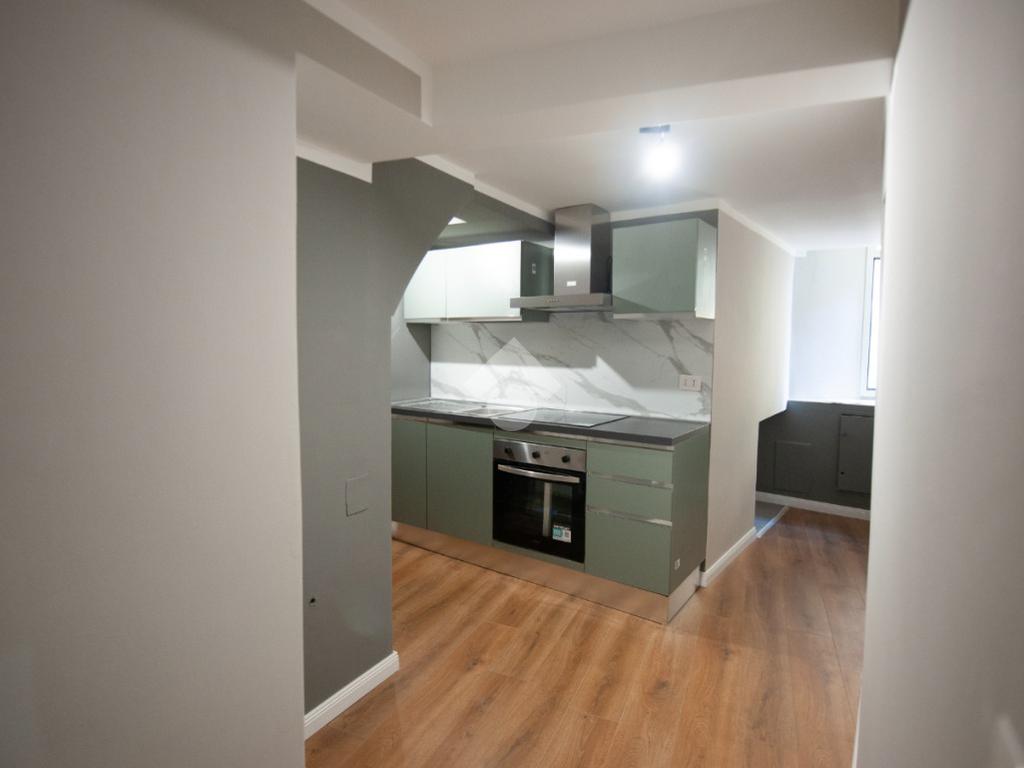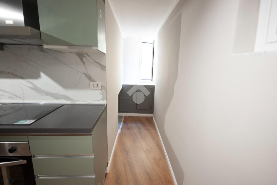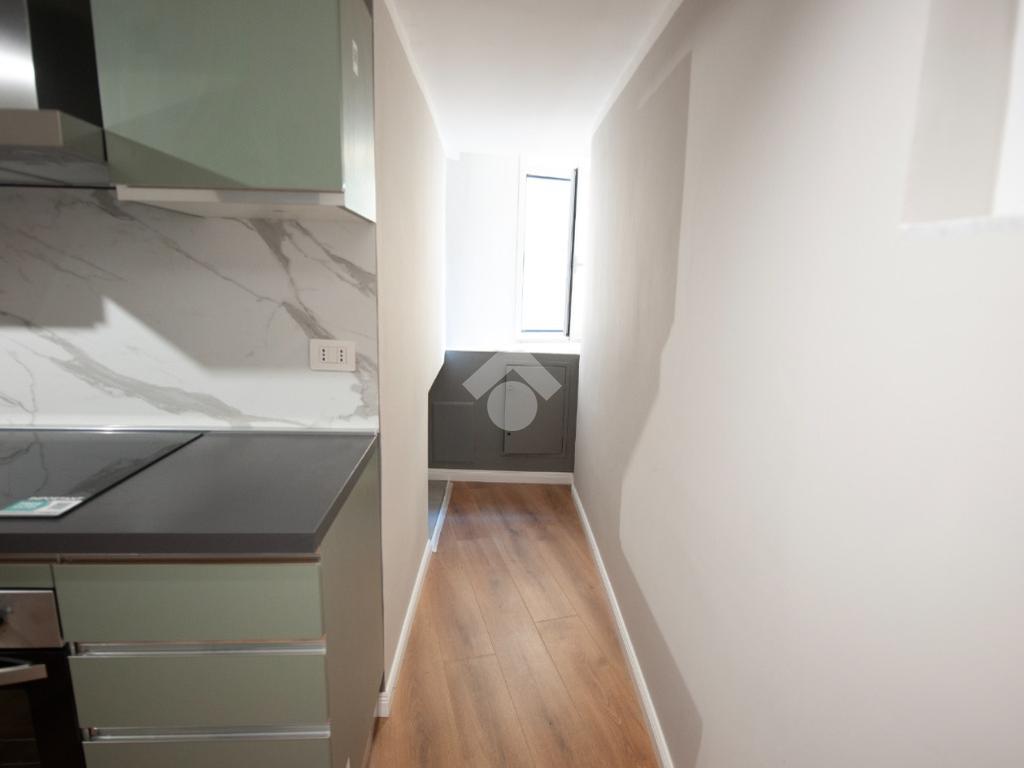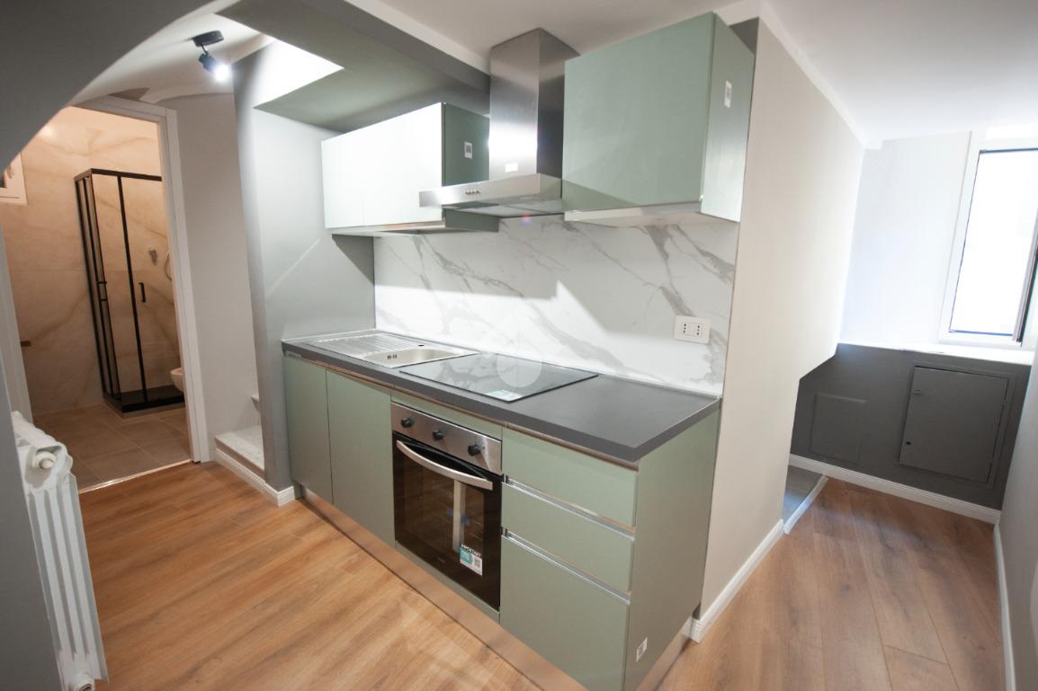 Proseguendo troviamo il posto cottura arredato con cucina nuova, appena montata e fatta su misura. In questo spazio abbiamo due ripostigli di cui uno dotato di attacco per la lavatrice.