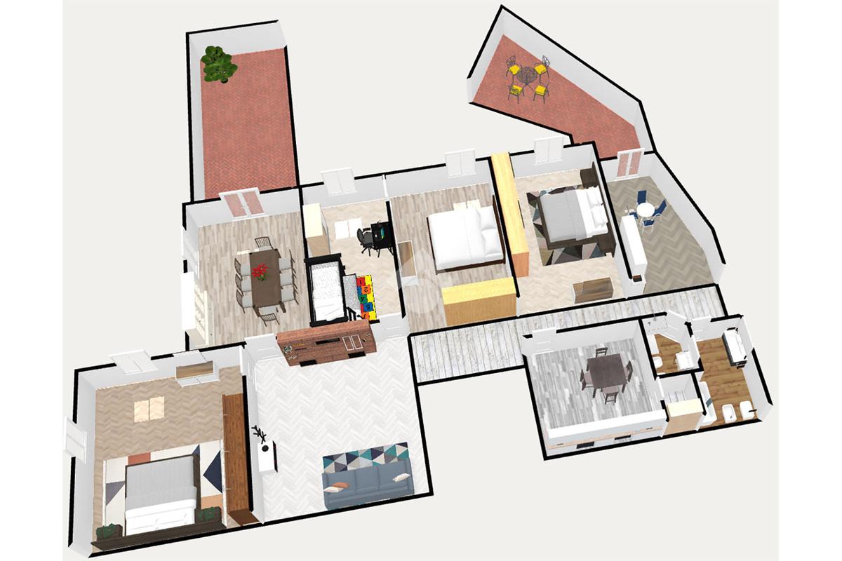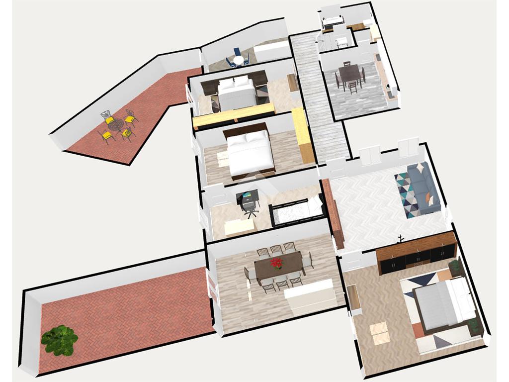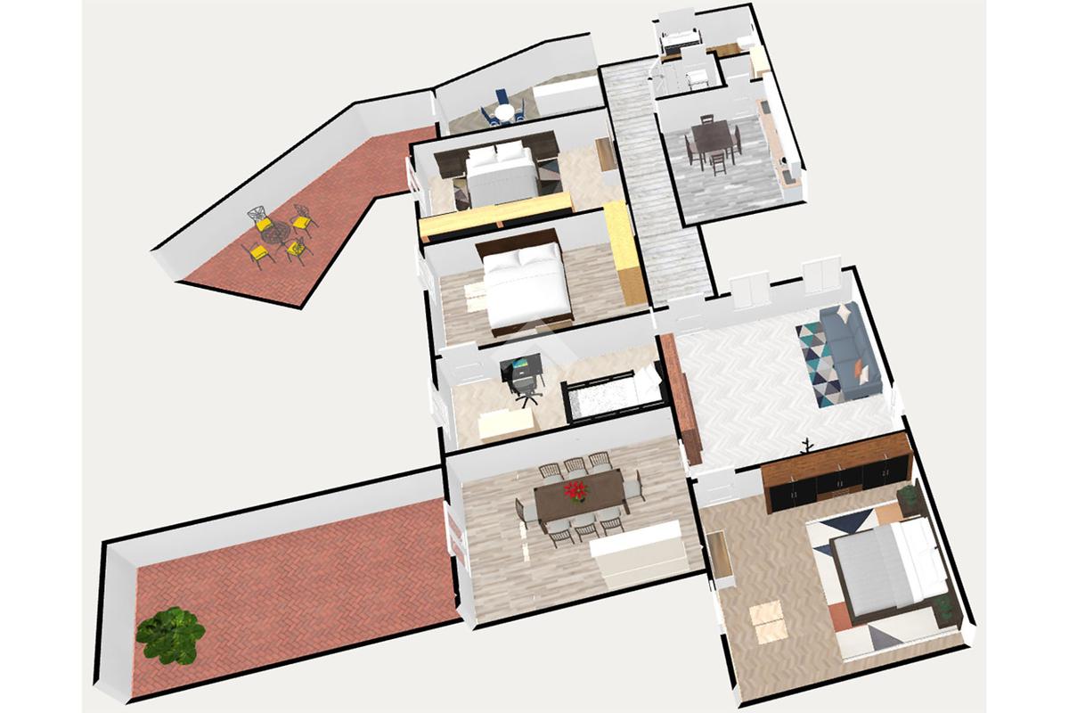 La zona notte comprende tre spaziose camere matrimoniali e una cameretta, garantendo comfort e privacy.