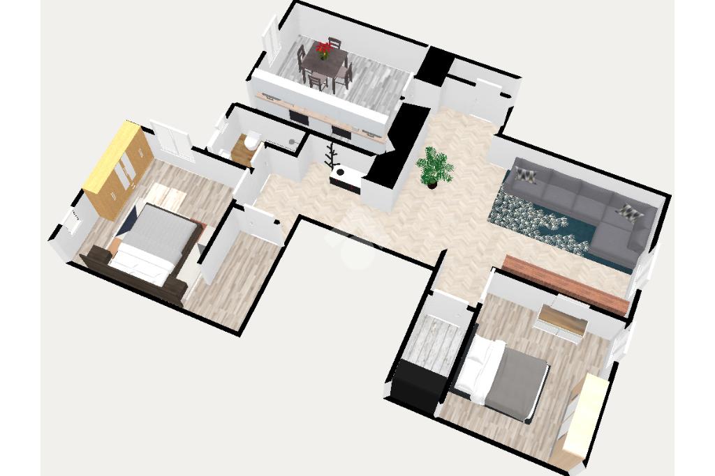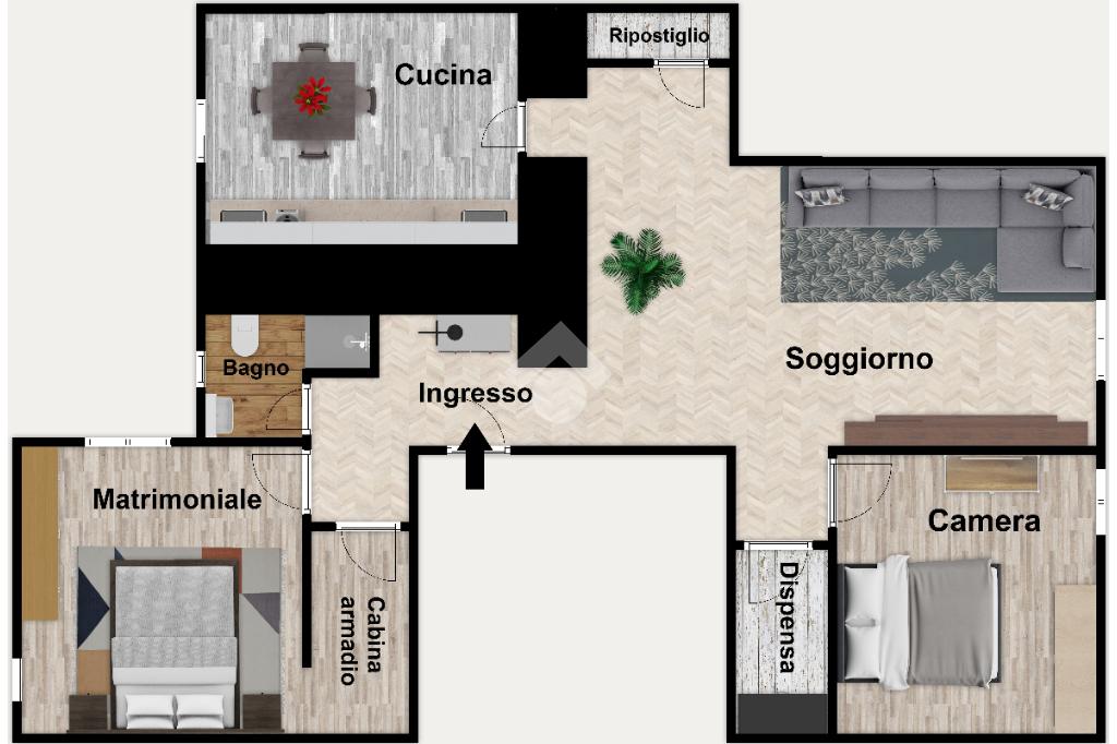 Le due camere da letto garantiscono comfort e privacy. La presenza di una dispensa aggiunge praticità e spazio per l'organizzazione domestica.